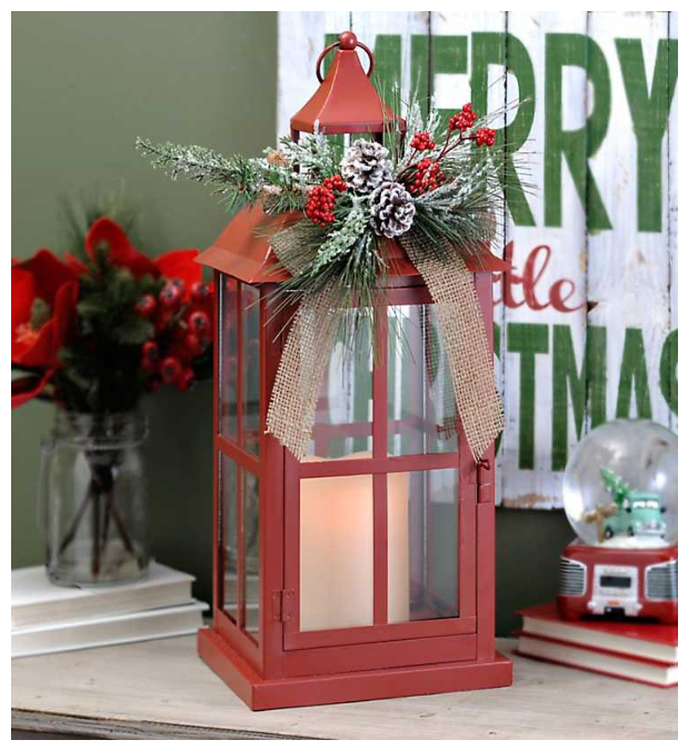 Here is a great tip….if you already have a lantern you love simply add a festive bow like this gorgeous gold handmade bow. It will take your plain lantern to a whole new level.