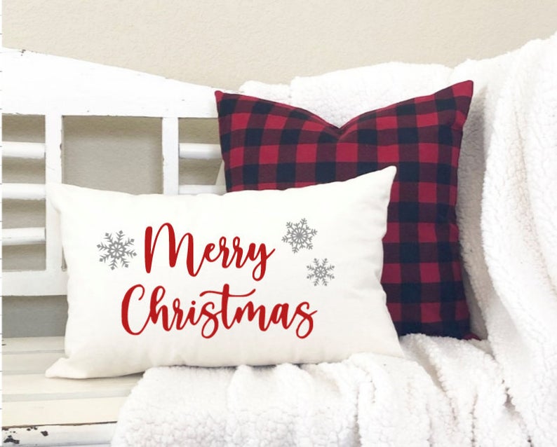 Add a fluffy festive pillow to your sofa and chairs. They really add a warm holiday vibe. See more pillows here—-> HOLIDAY PILLOWS